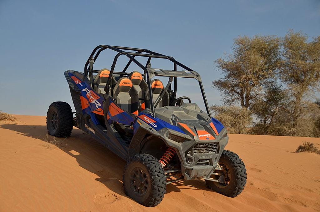 After the dune Bashing experience, stop in the heart of the desert to choose and enjoy a quad, buggy or camel ride. Your drivers will then take you to a camel farm for a photo stop. Admire a spectacular sunset view over the desert from a dune as well.